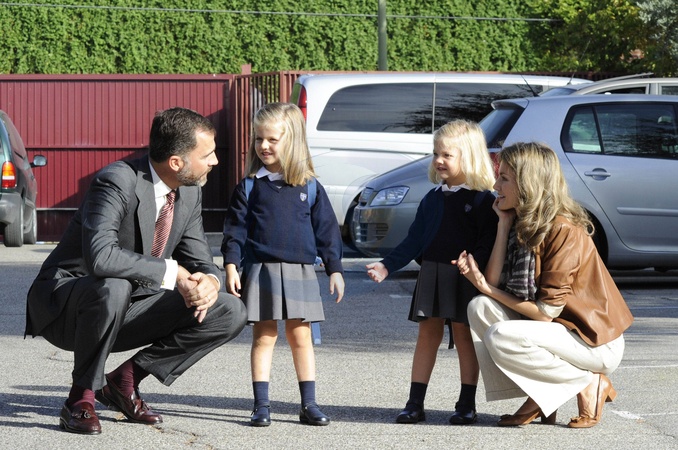 Ksiaze Filip i Letizia ida z corkami do szkoly, Madryt