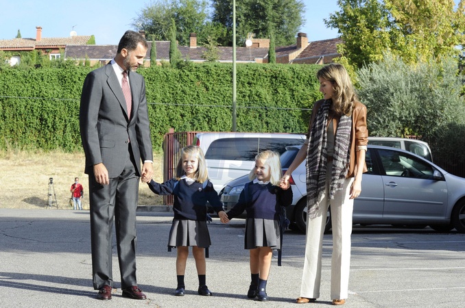 Ksiaze Filip i Letizia ida z corkami do szkoly, Madryt