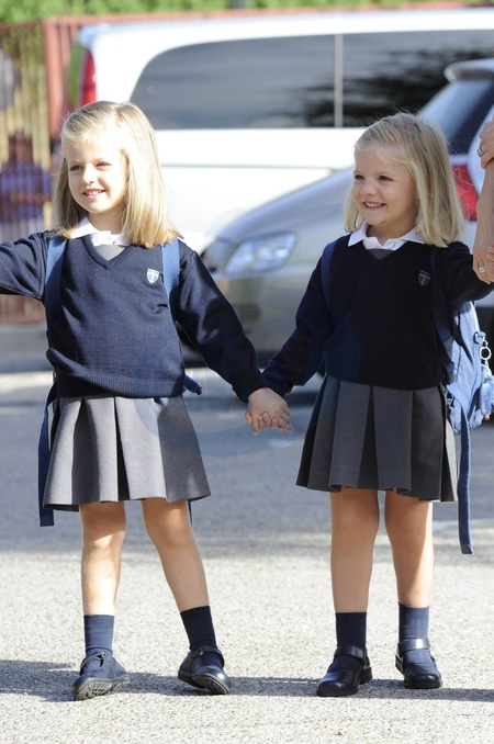 Ksiaze Filip i Letizia ida z corkami do szkoly, Madryt