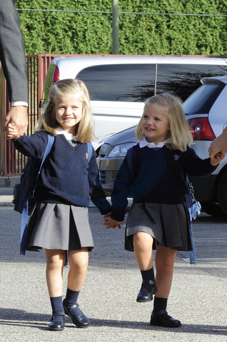 Ksiaze Filip i Letizia ida z corkami do szkoly, Madryt