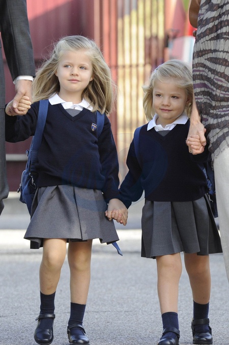Ksiaze Filip i Letizia ida z corkami do szkoly, Madryt