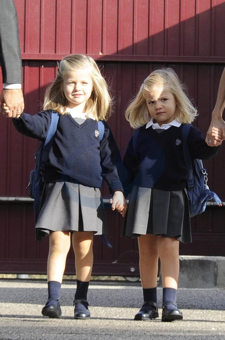 Ksiaze Filip i Letizia ida z corkami do szkoly, Madryt