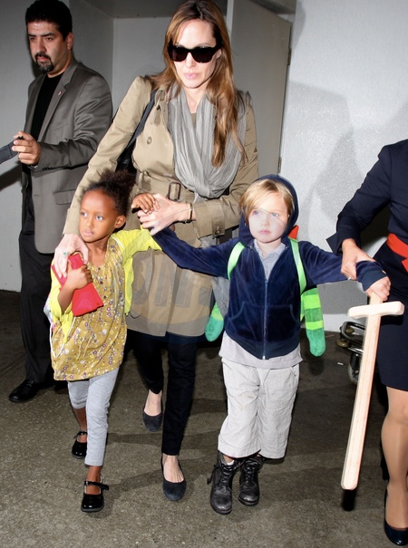 Angelina Jolie z corkami na lotnisku w Los Angeles