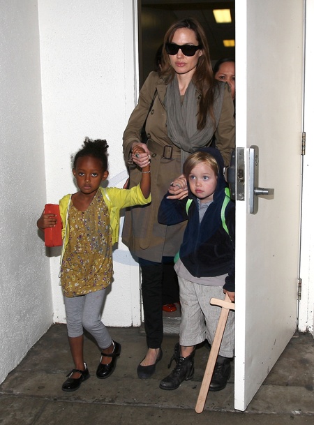 Angelina Jolie z corkami na lotnisku w Los Angeles