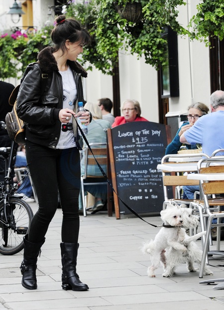 Daisy Lowe na spacerze z psem, Londyn