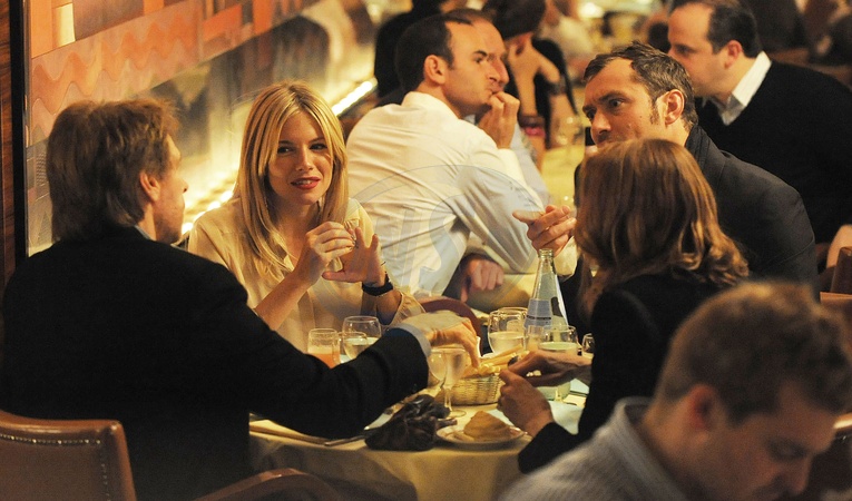 Sienna Miller i Jude Law wracaja z restauracji, Londyn