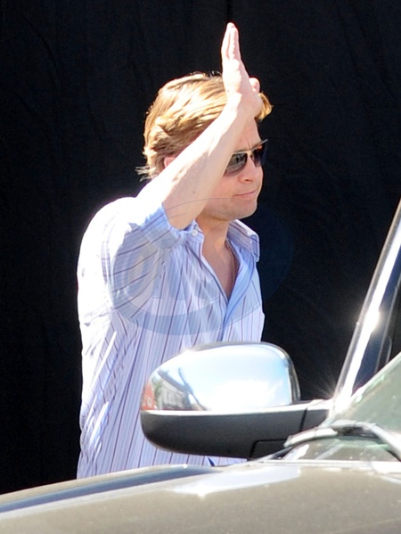 Brad Pitt na planie filmu "Moneyball" , Los Angeles