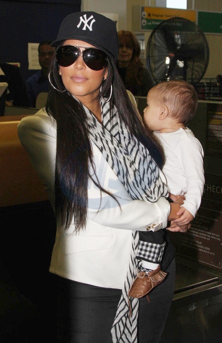 Siostry Kardashian z dzieciem na lotnisku w Los Angeles