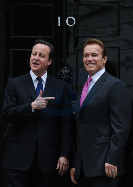 Premier David Cameron i gubernator Kalifornii Arnold Schwarzenegger podczas spotkania w Londynie