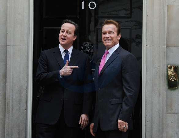 Premier David Cameron i gubernator Kalifornii Arnold Schwarzenegger podczas spotkania w Londynie