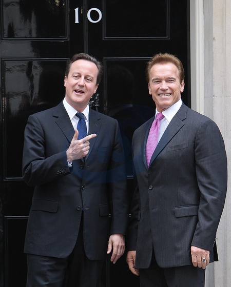 Premier David Cameron i gubernator Kalifornii Arnold Schwarzenegger podczas spotkania w Londynie