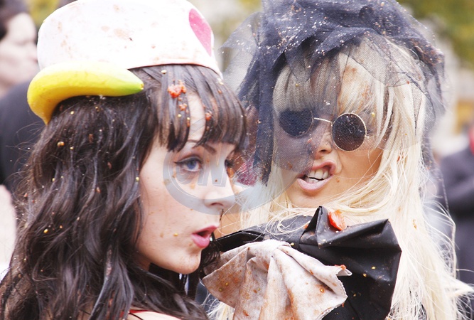 Sobowtory Lady Gagi i Katy Perry walcza w pomidorach, Londyn
