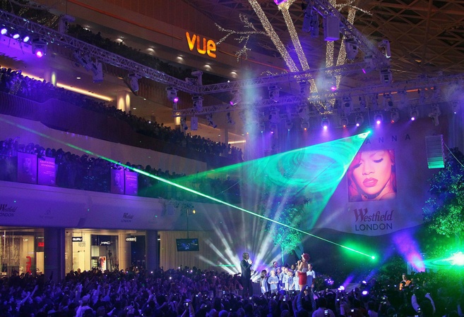 Rihanna podczas koncertu w centrum handlowym, Londyn