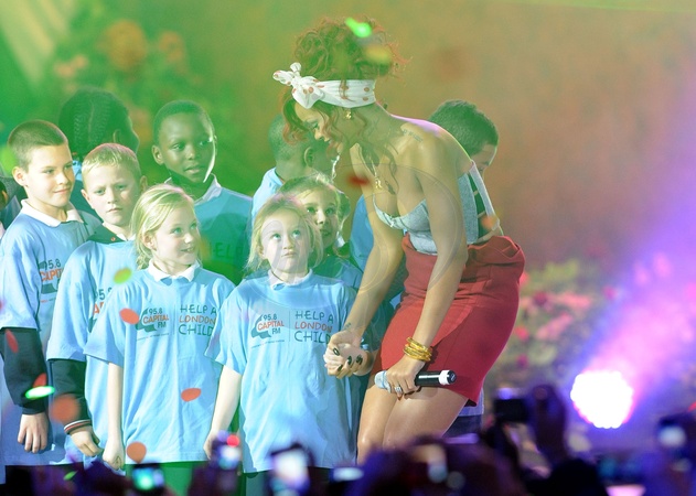 Rihanna podczas koncertu w centrum handlowym, Londyn
