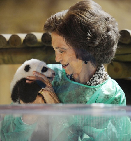 Krolowa Zofia z mala panda w ZOO, Madryt