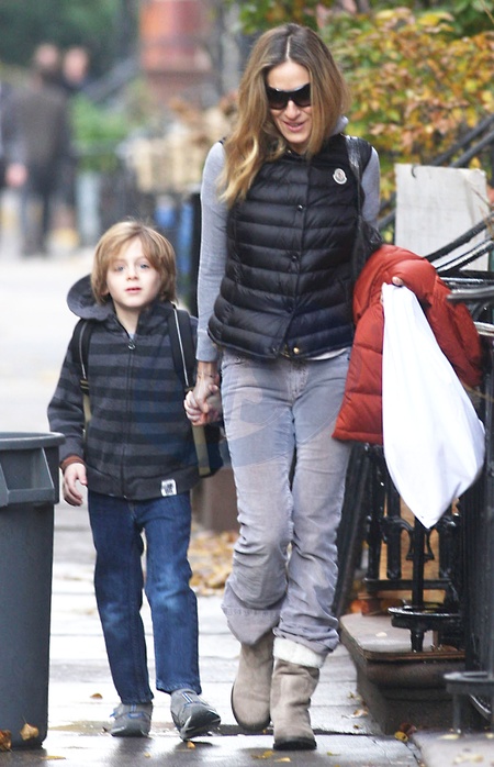 Sarah Jessica Parker z synem wracaja ze szkoly, Nowy Jork