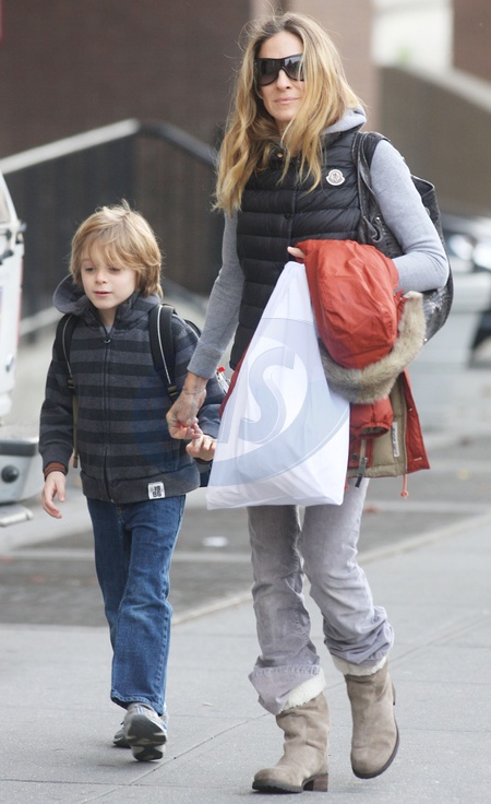 Sarah Jessica Parker z synem wracaja ze szkoly, Nowy Jork