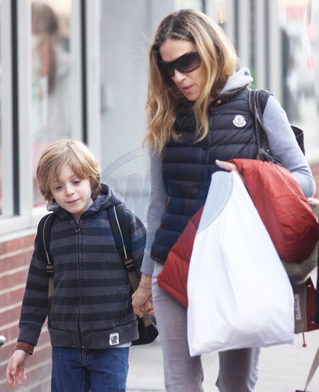 Sarah Jessica Parker z synem wracaja ze szkoly, Nowy Jork