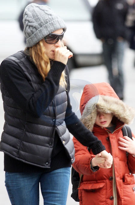 Sarah Jessica Parker z synem wracaja ze szkoly, Nowy Jork