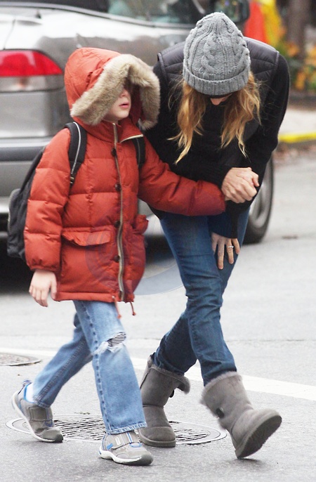 Sarah Jessica Parker z synem wracaja ze szkoly, Nowy Jork