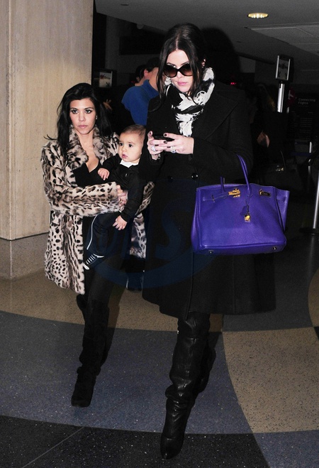 Siostry Kardashian z dzieckiem na lotnisku, Los Angeles