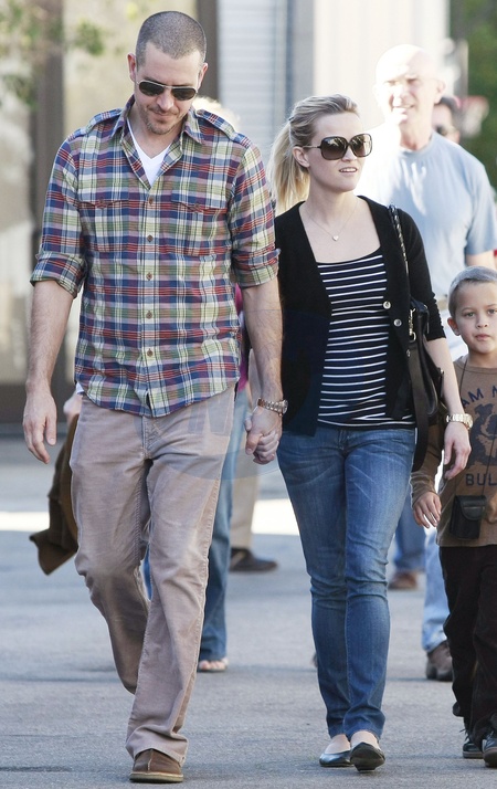 Reese Witherspoon z dziecmi i chlopakiem ida do kosciola, Los Angeles