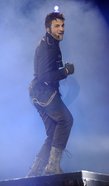 Peter Andre wystapil na zywo w Manchesterze, a jego dzieci zasiadly na widowni.