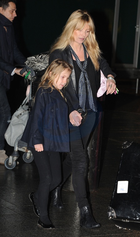 Kate Moss z chlopakiem i corka na lotnisku, Londyn