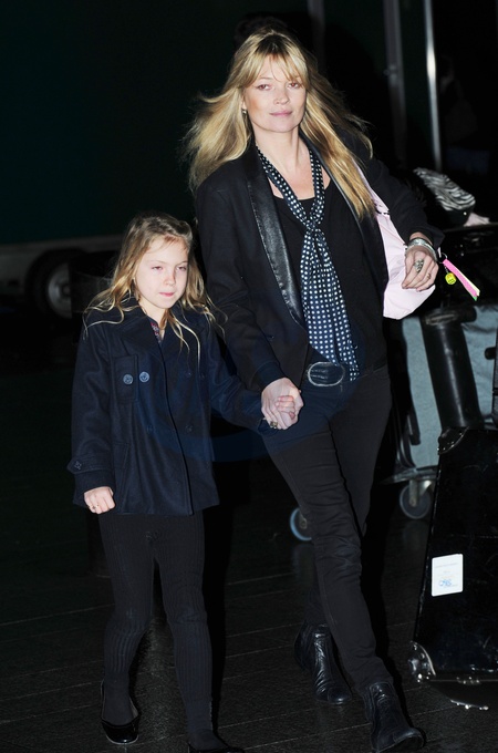 Kate Moss z chlopakiem i corka na lotnisku, Londyn