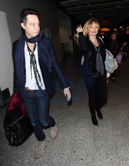 Kate Moss z chlopakiem i corka na lotnisku, Londyn