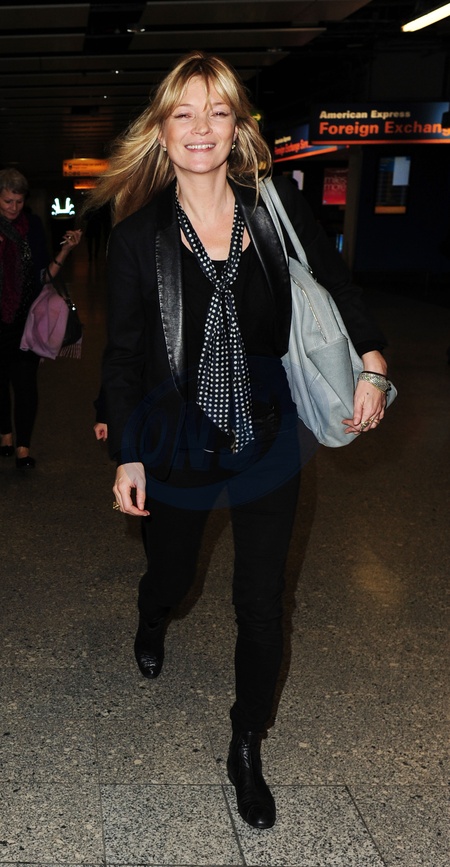 Kate Moss z chlopakiem i corka na lotnisku, Londyn