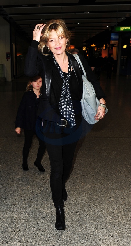 Kate Moss z chlopakiem i corka na lotnisku, Londyn