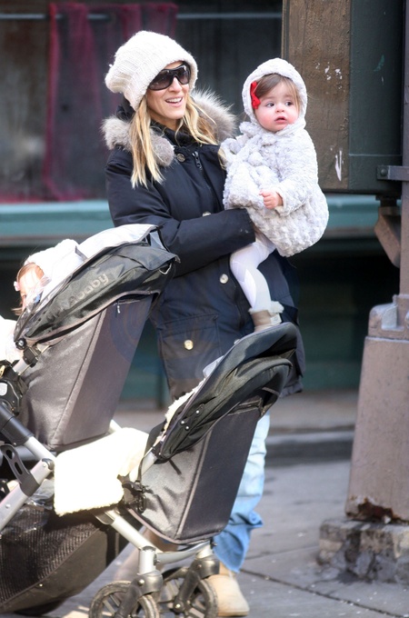 Sarah Jessica Parker z blizniaczkami Marion i Tabitha na spacerze, Nowy Jork