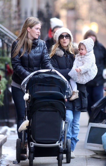 Sarah Jessica Parker z blizniaczkami Marion i Tabitha na spacerze, Nowy Jork