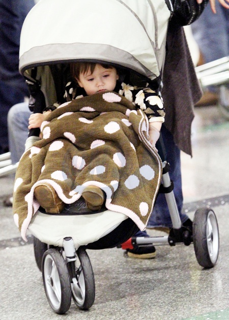 Oksana Grigorieva z corka na lotnisku Lax w Los Angeles