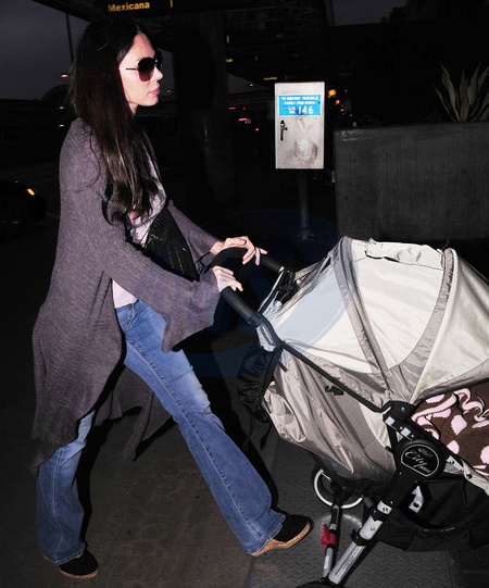 Oksana Grigorieva z corka na lotnisku Lax w Los Angeles