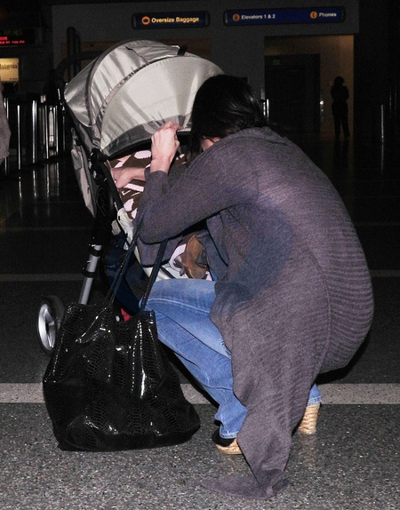 Oksana Grigorieva z corka na lotnisku Lax w Los Angeles
