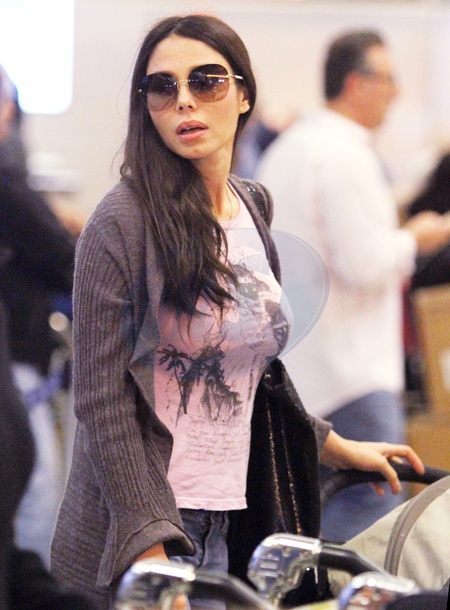 Oksana Grigorieva z corka na lotnisku Lax w Los Angeles