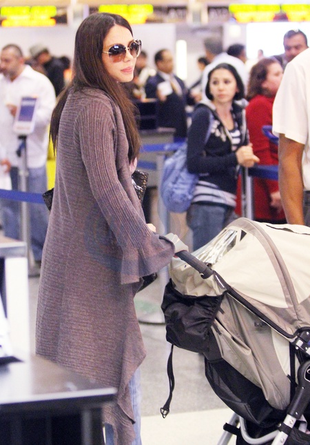 Oksana Grigorieva z corka na lotnisku Lax w Los Angeles