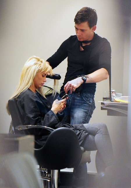 Kate Price w salonie fryzjerskim zmienia fryzure, Londyn