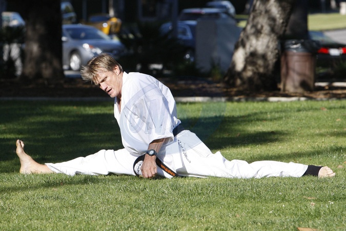 Dolph Lundgren trenuje sztuki walki w parku w Beverly Hills