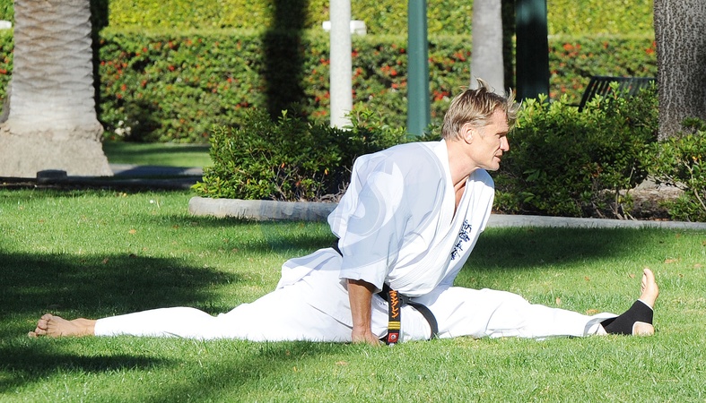 Dolph Lundgren trenuje sztuki walki w parku w Beverly Hills