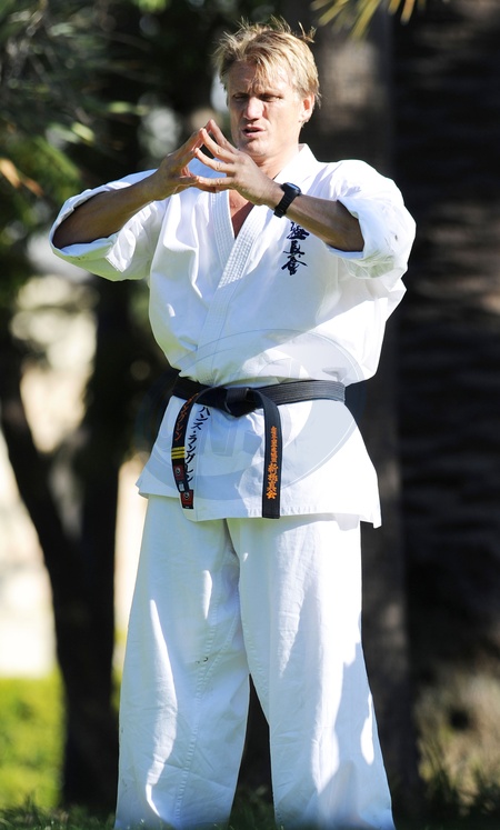 Dolph Lundgren trenuje sztuki walki w parku w Beverly Hills