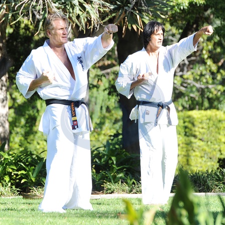Dolph Lundgren trenuje sztuki walki w parku w Beverly Hills