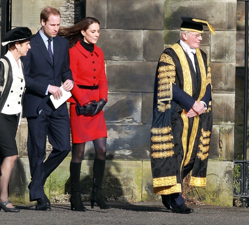 Ksiaze William ze swoja narzeczona z wizyta na uniwersytecie w Szkocji.
