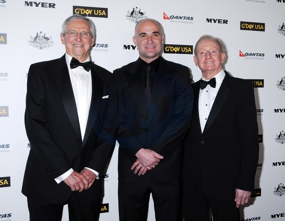 Roy Emerson, Andre Agassi, Rod Laver