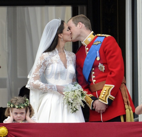 Slub ksiecia Williama i Kate Middleton - Panstwo Mlodzi na balkonie Palacu Buckingham, Londyn