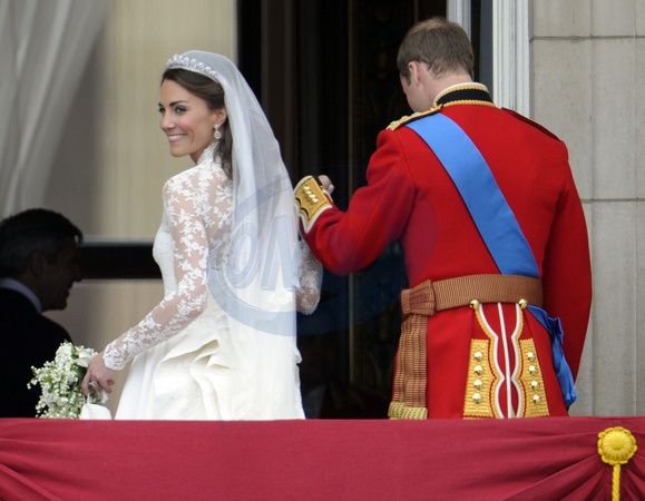 Slub ksiecia Williama i Kate Middleton - Panstwo Mlodzi na balkonie Palacu Buckingham, Londyn