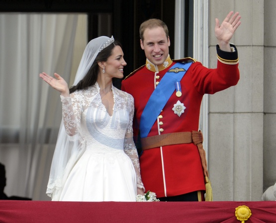 Slub ksiecia Williama i Kate Middleton - Panstwo Mlodzi na balkonie Palacu Buckingham, Londyn