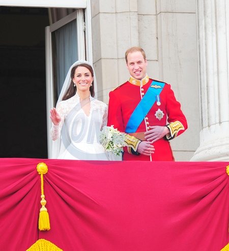 Slub ksiecia Williama i Kate Middleton - Panstwo Mlodzi na balkonie Palacu Buckingham, Londyn